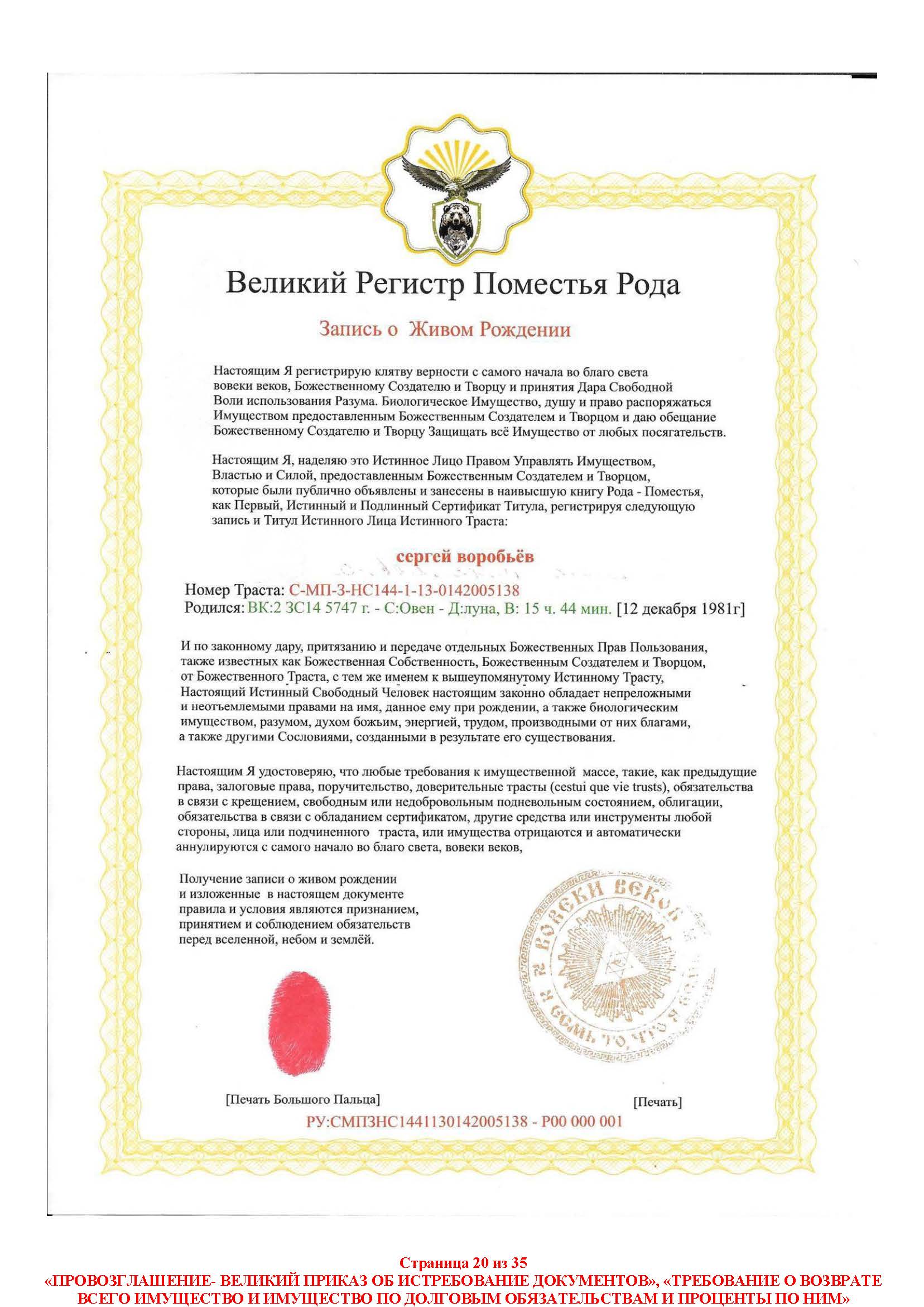 Все права защищены в Священном Доверии в соответствии с Заветом под Истинным Божественным Создателем и Творцом