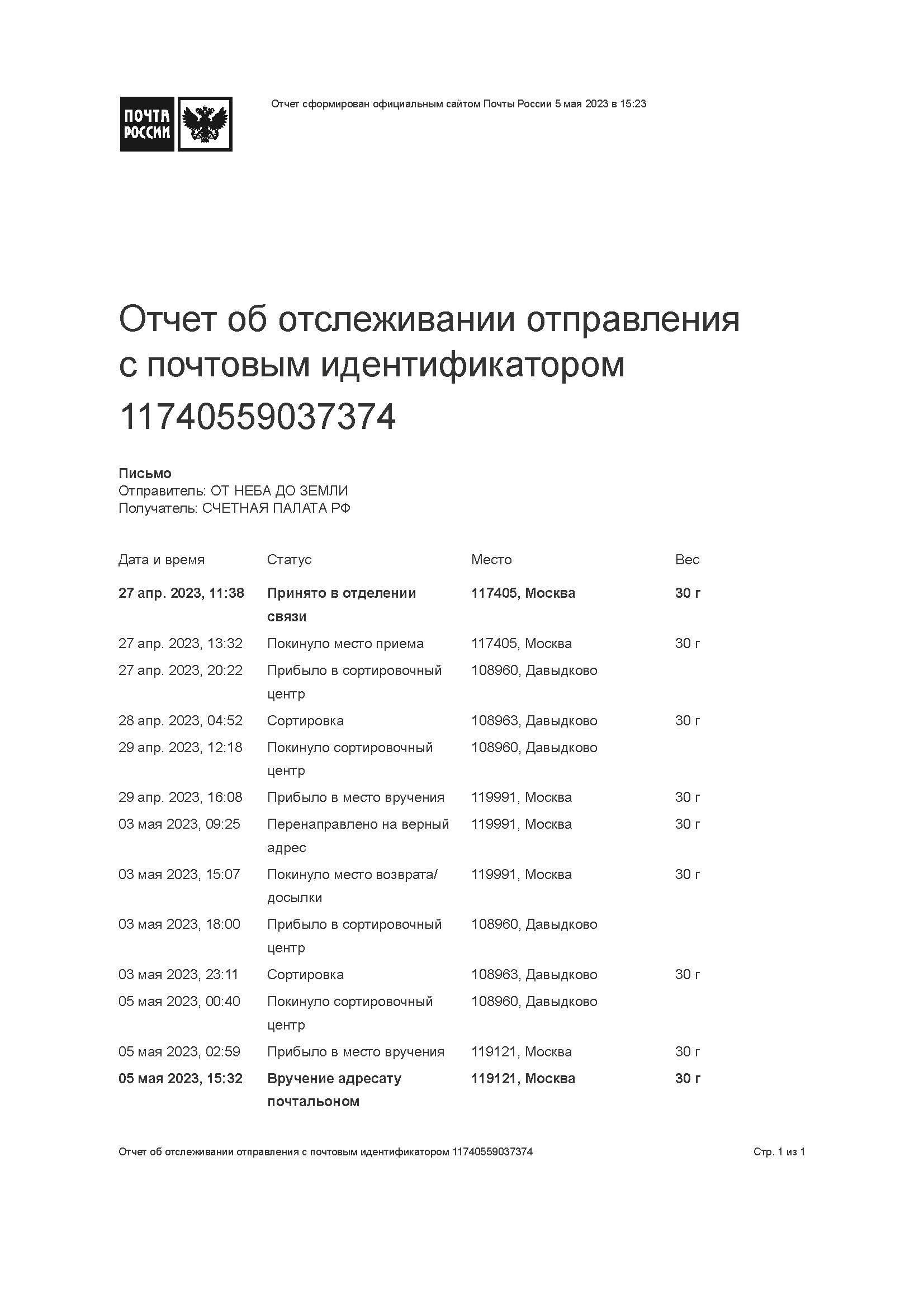 СЧЕТНАЯ ПАЛАТА РОССИЙСКОЙ ФЕДЕРАЦИИ