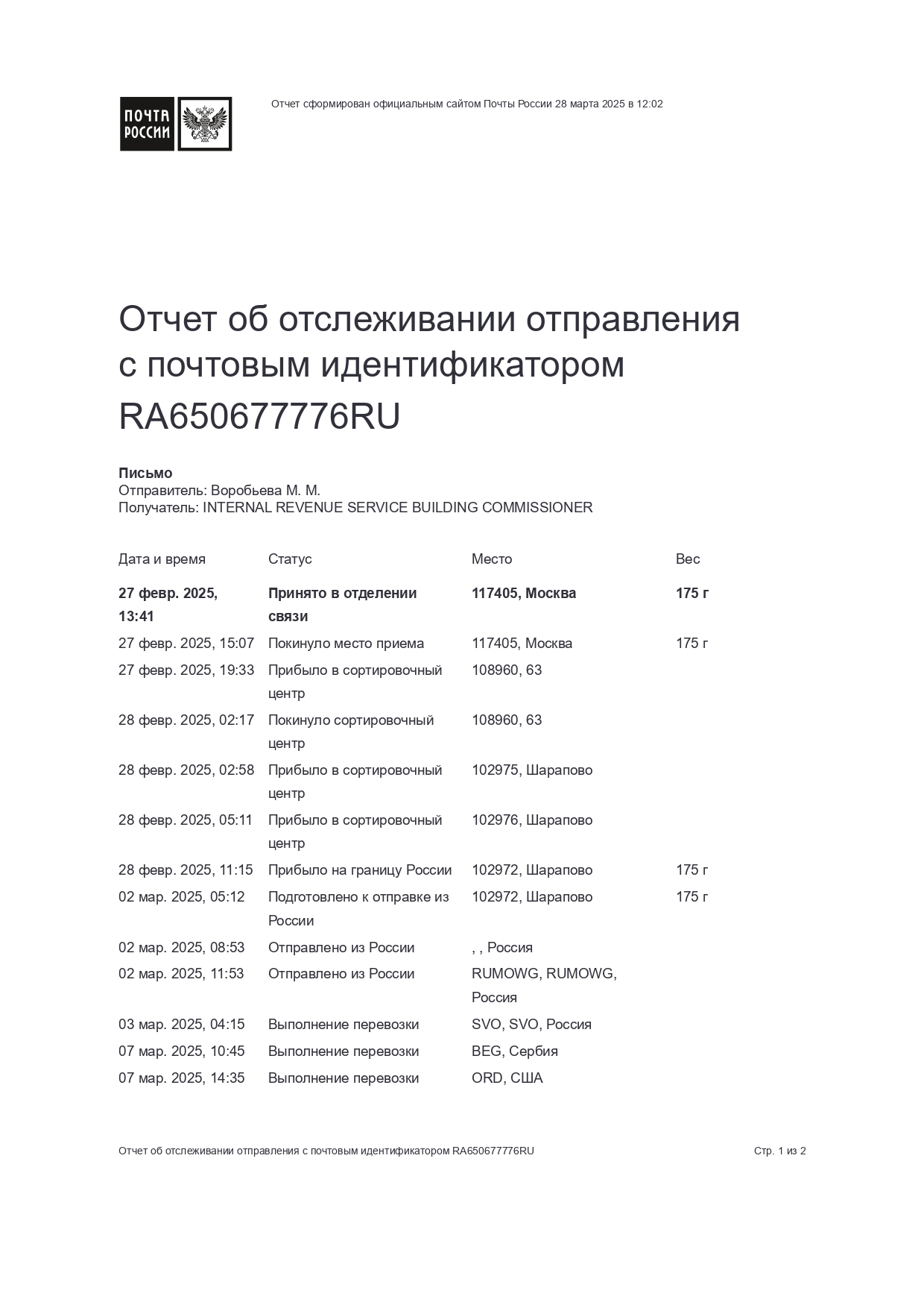 UCC FINANCING STATEMENT VOROBYOV