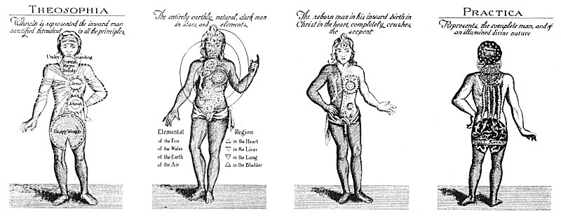 Иоганн Георг Гихтель, глубокий философ и мистик, самый просветлённый из учеников Якоба Бёме, тайно распространял вышеупомянутые диаграммы среди небольшой группы преданных друзей и учеников. Гихтель переиздал труды Бёме, проиллюстрировав их многочисленными замечательными рисунками. По словам Гихтеля, представленные выше диаграммы изображают анатомию божественного (или внутреннего) человека и графически показывают его состояние в человеческом, адском и божественном состояниях. Иллюстрации в издании работ Бёме Уильяма Лоу, по-видимому, основаны на диаграммах Гихтеля, которым они следуют во всех основных моментах. Гихтель не даёт подробного описания своих рисунков, и единственным ключом к интерпретации диаграмм является надпись на оригинальных диаграммах, переведённая здесь с немецкого.