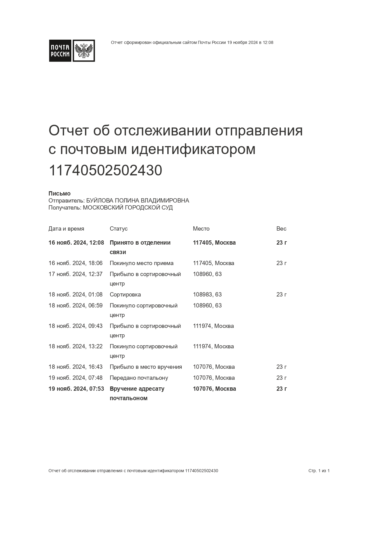 День недели: понедельник