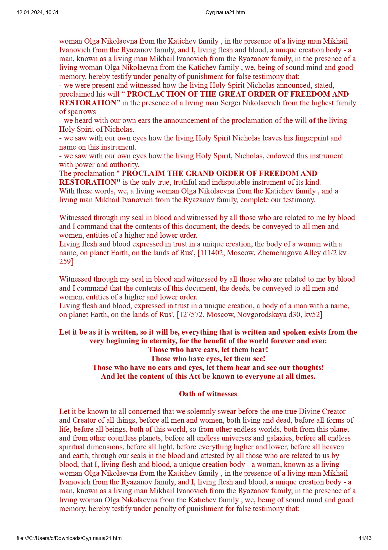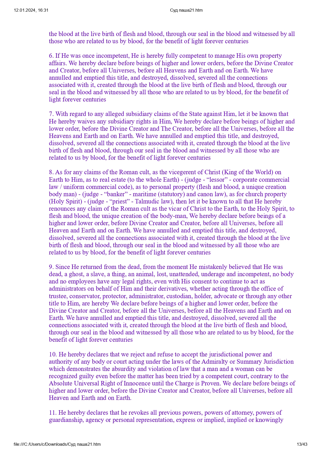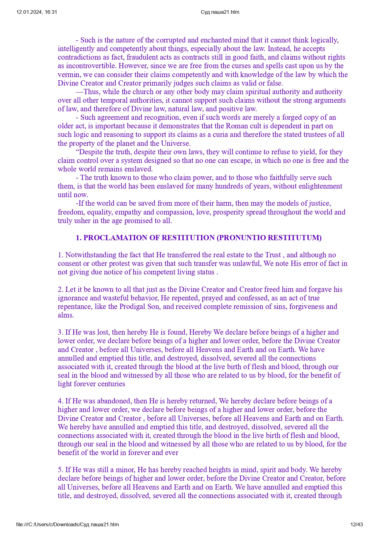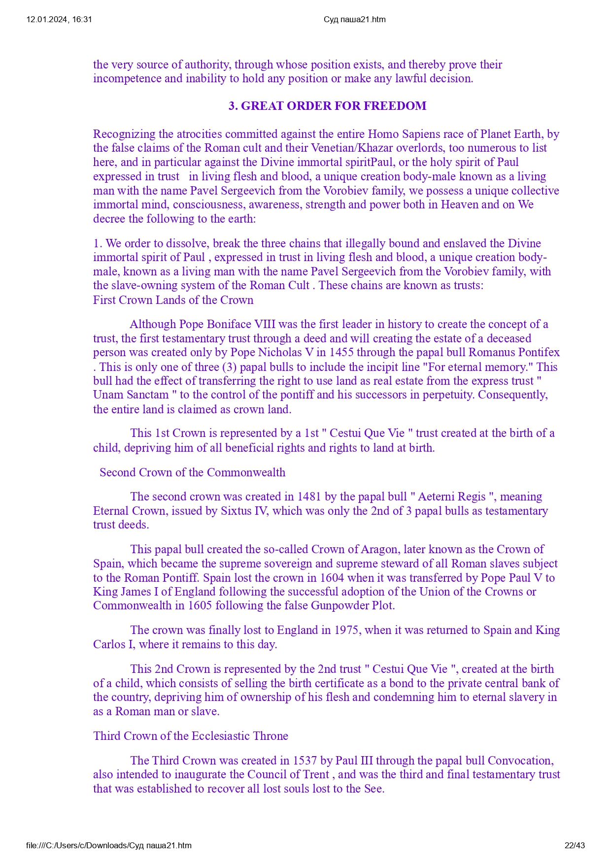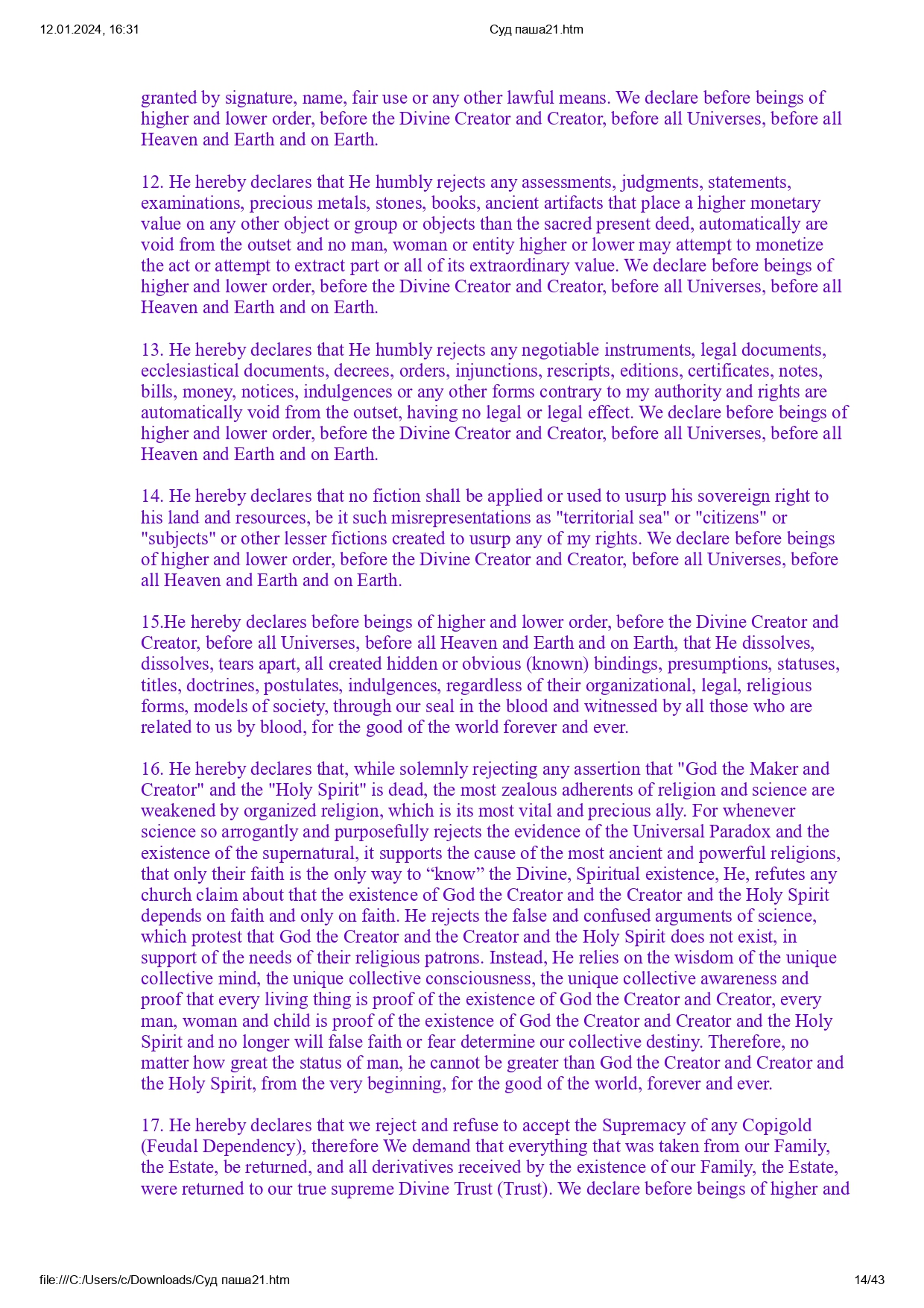 Все права защищены в Священном Доверии в соответствии с Заветом