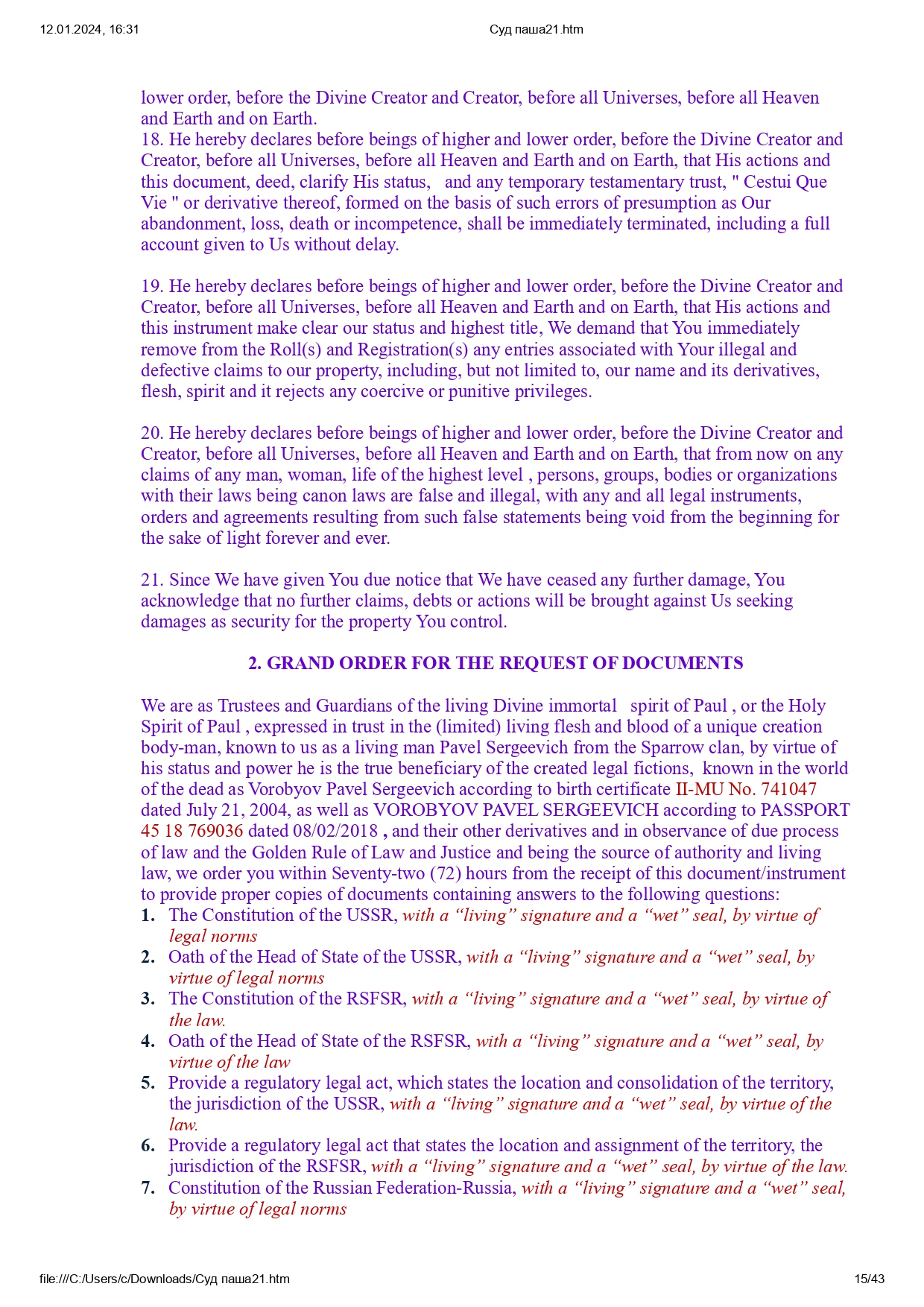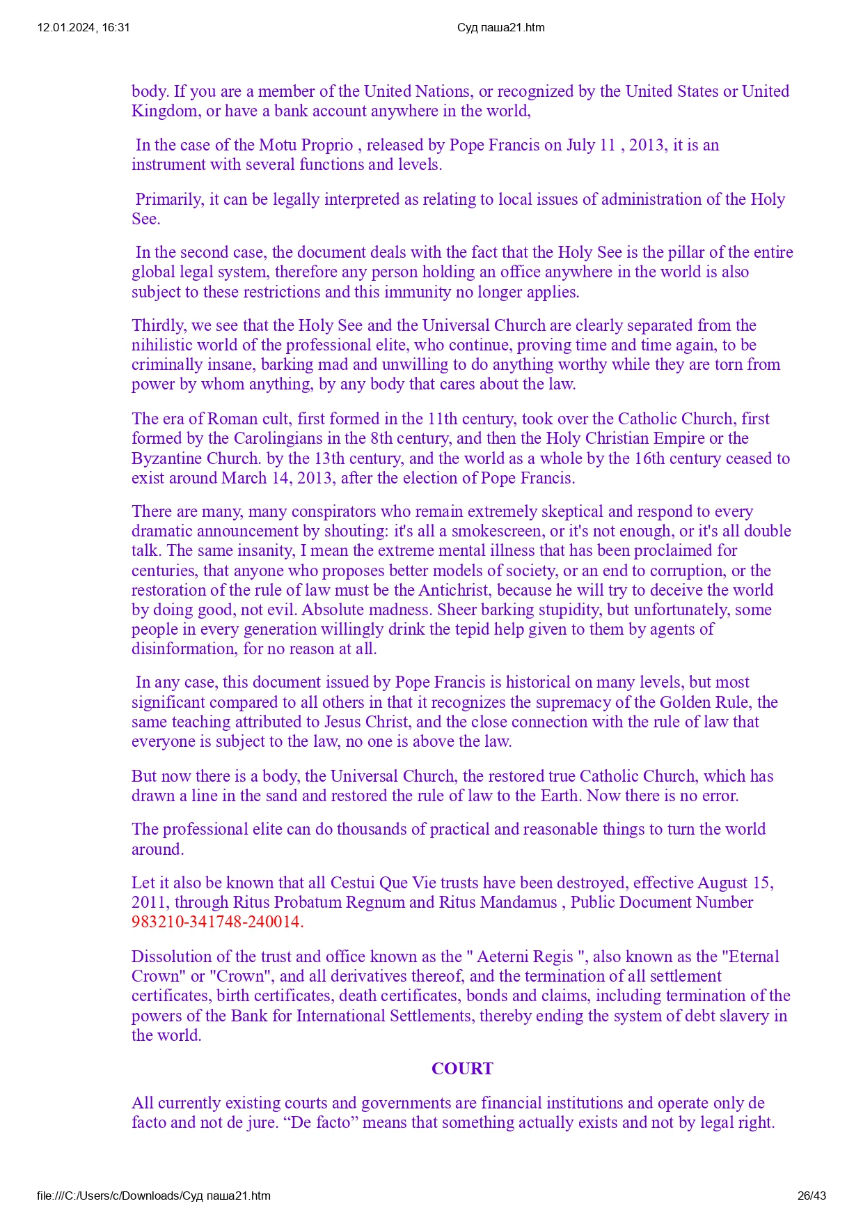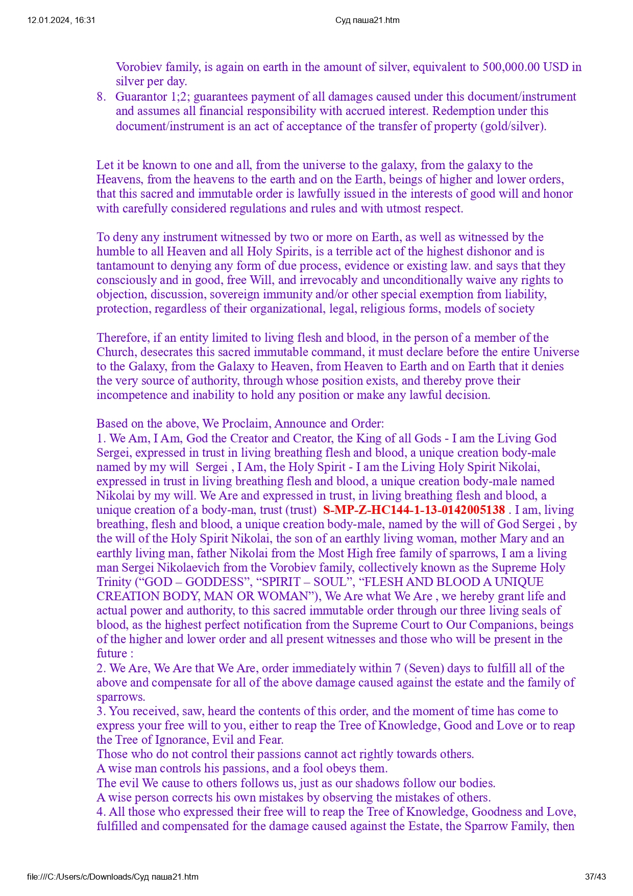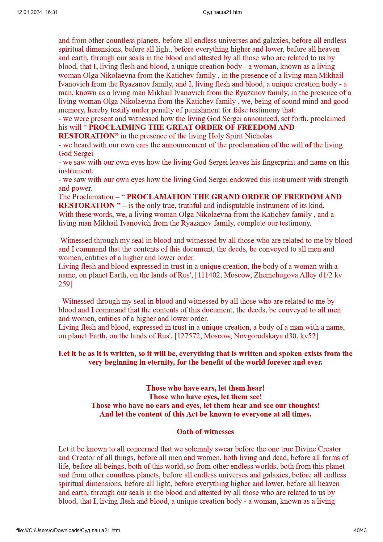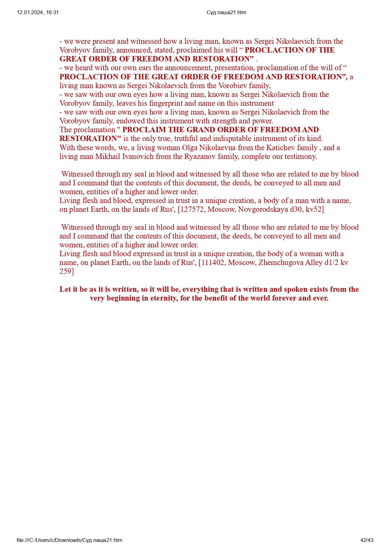 Все права защищены в Священном Доверии в соответствии с Заветом